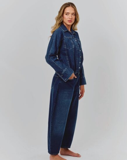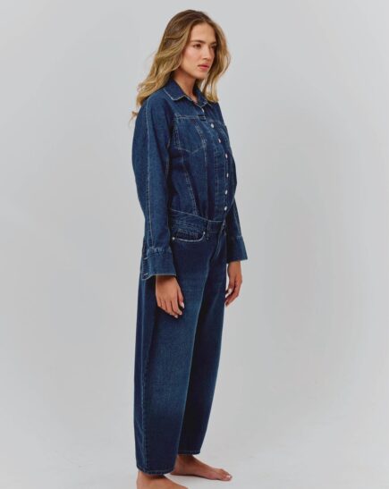 ג'ינס מבד דנים. גזרה בגובה בינוני ומותן עם לולאות. חמישה כיסים. קפל בחזית. סגירה קדמית עם רוכסן, כפתור וווים ממתכת.