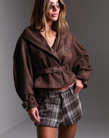 ג'קט RYAN בגזרת טראנץ קרופ מבד זמש
