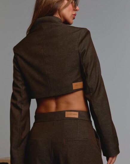 ג'קט שון ג'קט קרופ מבד מחויט בגזרה מדויקת מושלם עם המכנס שלו התואם מגיע במידות S M L על הדוגמנית מידה S
