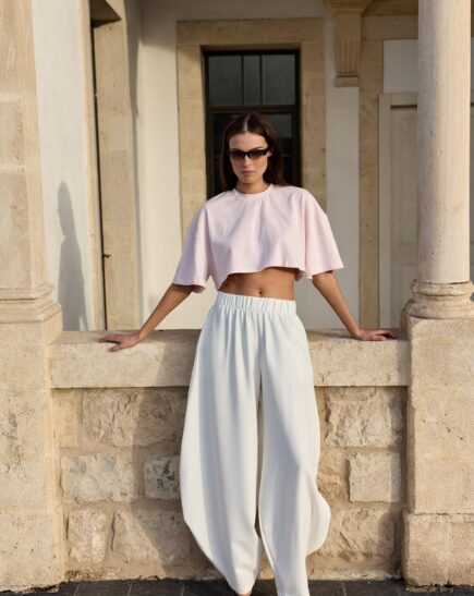 חולצת קרופ בגזרה רחבה עם שרוולים קצרים