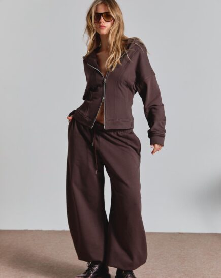 רך ונעים הסט כולל ג'קט קצר עם רוכסן מכנסיים רחבים