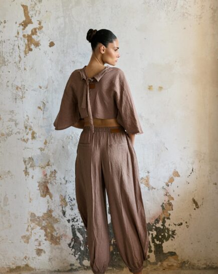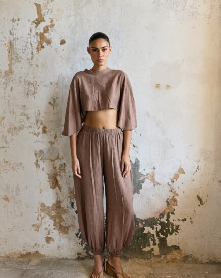 חולצה בגזרת קרופ עם שרוולים רחבים