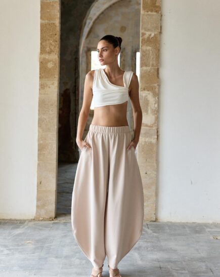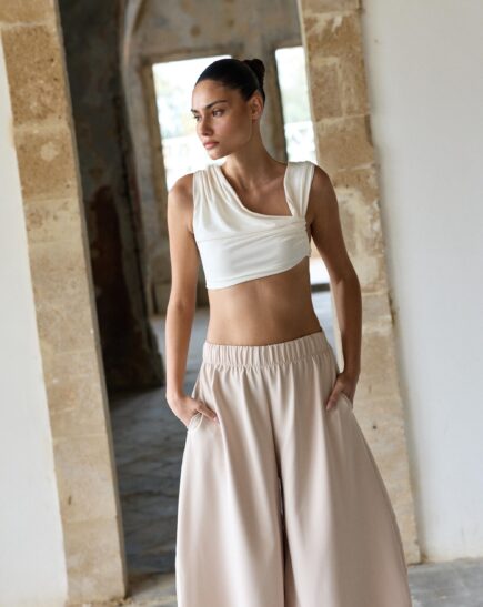 טופ אלה בגזרה כתף אחת במידות S M L הדוגמנית לובשת S