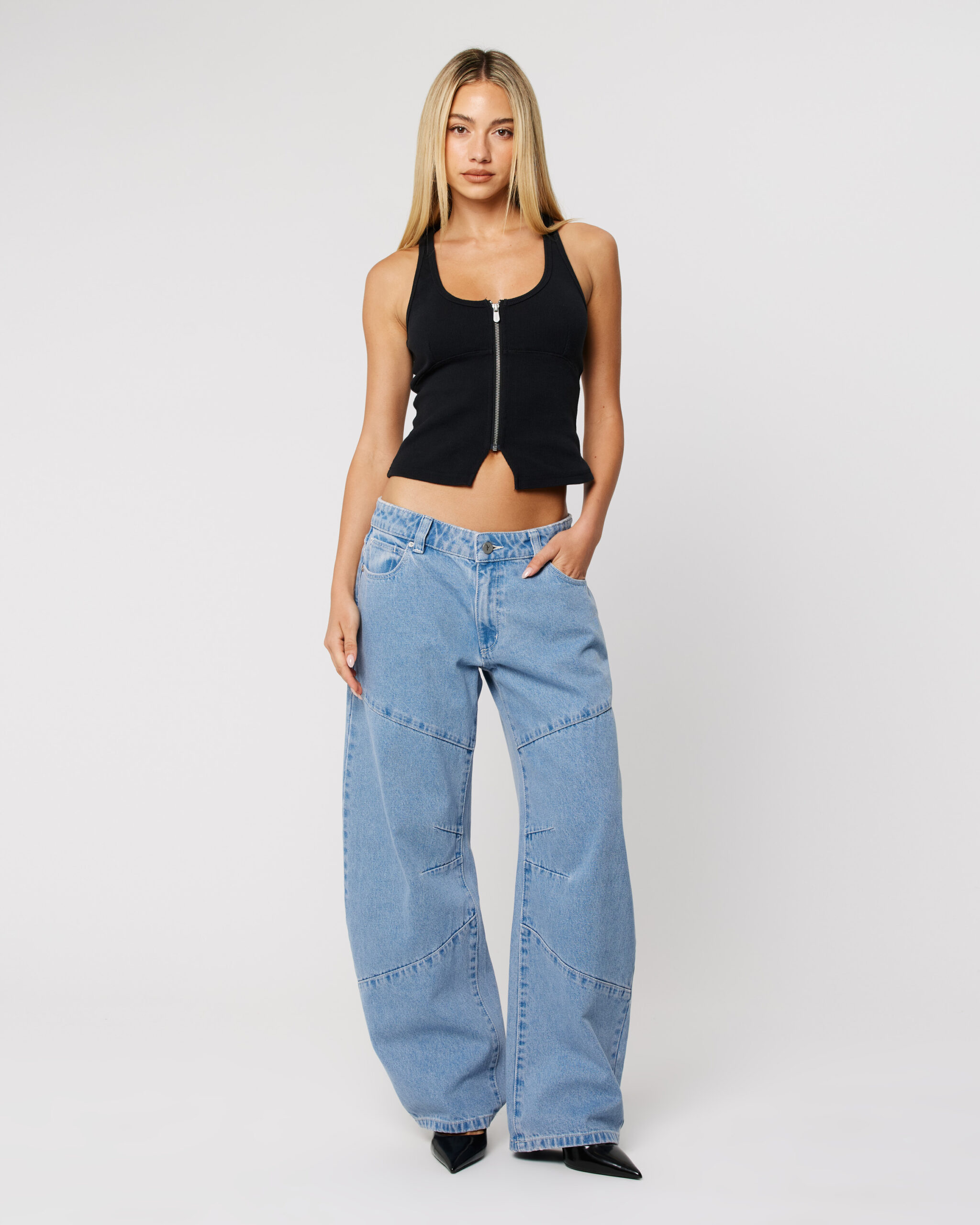 מכנס ברוקלין בגזרת בלון במראה באגי עם פנסים קדמיים עם מותן גבוהה המאפשרים התאמה מושלמת לגוף מגיע במידות S M L על הדוגמנית מידה S מתאים לשילוב עם ג'קט ברוקלין